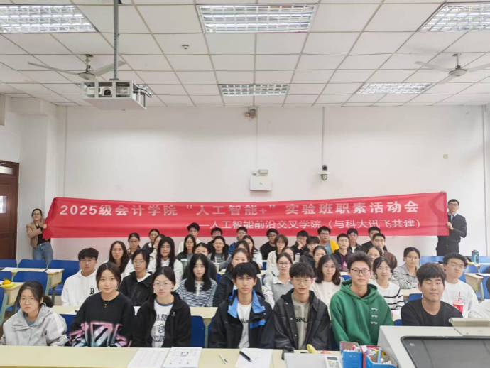 近日,由南京财经大学与科大讯飞共建的人工智能前沿交叉学院为2025级“人工智能+”实验班的新生们,分班举办了四场别开生面的学生见面会和破冰活动。人工智能前沿交叉学院老师与工作人员分别与食工(人工智能)2501,工商(人工智能)2501、旅游(人工智能)2501、人资(人工智能)2501,金融科技(人工智能)2501、国贸(人工智能)2501以及会计(人工智能)2501的新生,进行了深入的交流,旨在帮助同学们尽快融入新集体,明确未来学习与发展方向。