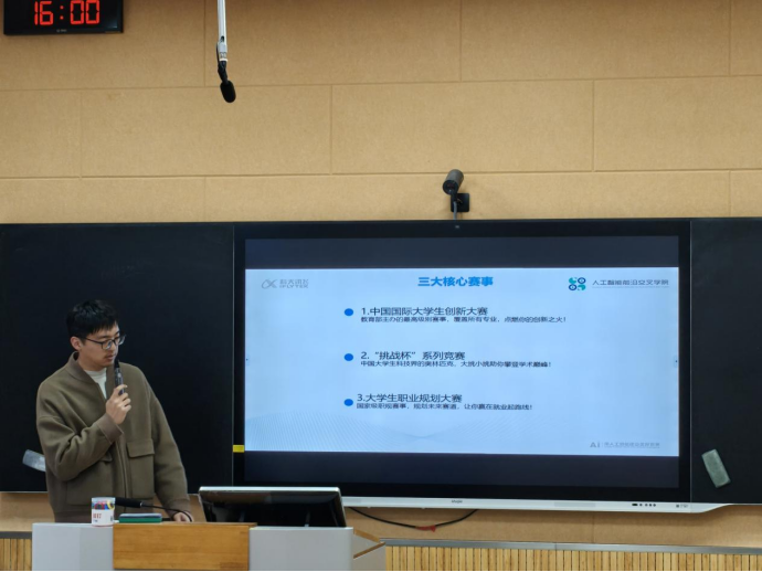为深入贯彻“以赛促学、以赛促教、以赛促创”的教育理念,激发学生创新潜能,培养高素质创新创业人才,我院于2025年12月22日至25日,分四个批次面向2025级全体“人工智能+”实验班学生,成功举办了竞赛专题宣讲会。本次宣讲会特邀科大讯飞职业素养导师张荣豪老师担任主讲,系统介绍了多项适合南财学生的国家级A类赛事,为学生参与科技创新实践提供了清晰指引。